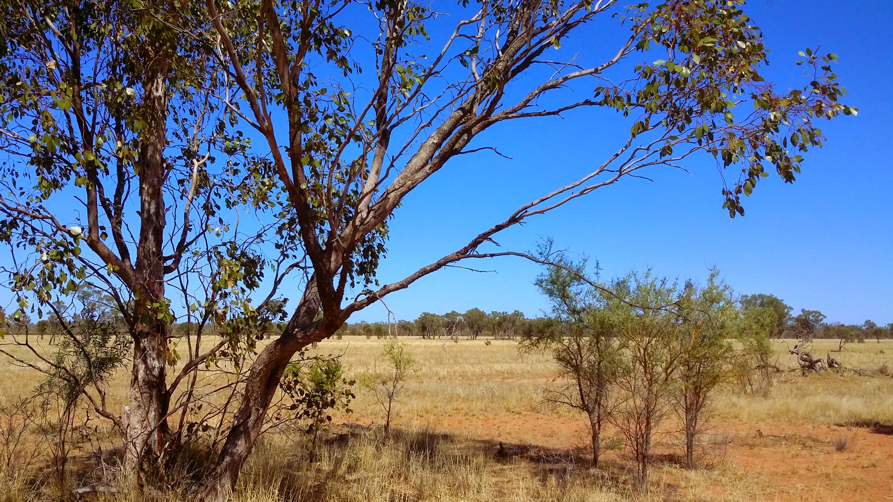 Long hot days of travelling and lots of cooling down stops for the dog, saw us travel another 800 odd kms on the Matilda Hwy, before spending a night in Barcaldine at a free rest stop and staying up just long enough to see the Blood Moon eclipse. This part of Queensland is the land of bush poets, shearers, large cattle stations, mining and extremes. Kynuna pub along the way was a great place to rest on a 38 C day and a surprise to find that Banjo Patterson first recited his famous ballad and Australia’s unofficial national anthem, Waltzing Matilda*in that very pub. This folk song/ballad has become one of the most often sung songs in Australian history. Most Aussies have no idea what it is about though and just are happy to be pulled into its melancholic rhythm. According to the Kynuna pub, it is an account of the 1894 shearers’ strike and an attempt to gain more pay from the squatters of the land. Striking shearers also assembled under a ghost gum in the town of Barcaldine and are said to have formed the Australian Labor party. The preserved 200 year old tree died from vandalism, but it is worth a visit as the architecture around the tree simulating a living tree is just amazing. As you stand under the living architecture, you can actually see and hear the tree move.