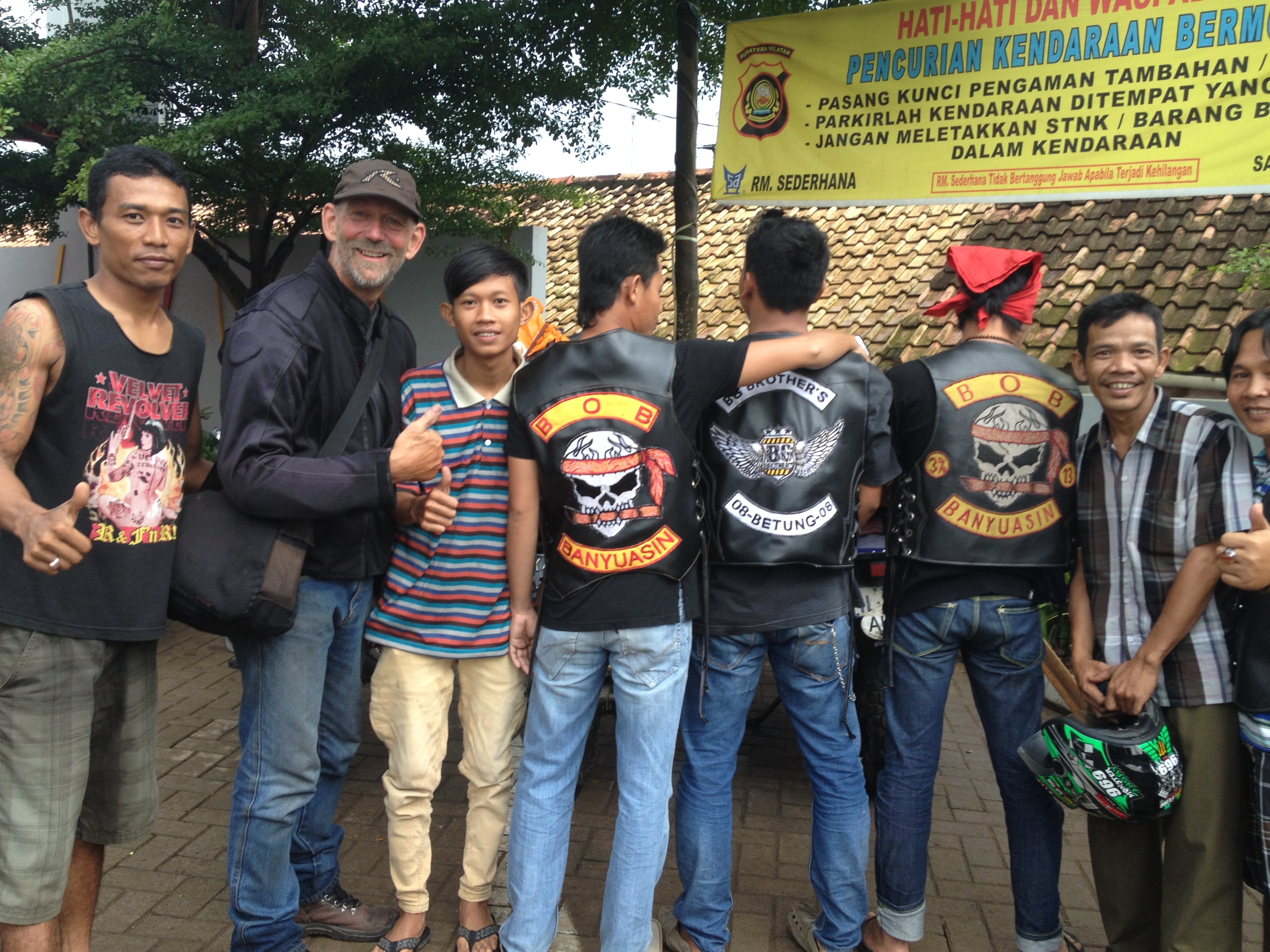 Throughout most of the world being approached by bikie characters clad in vests adorned with badges and a club motif you might feel afraid. Not so in Sumatra!