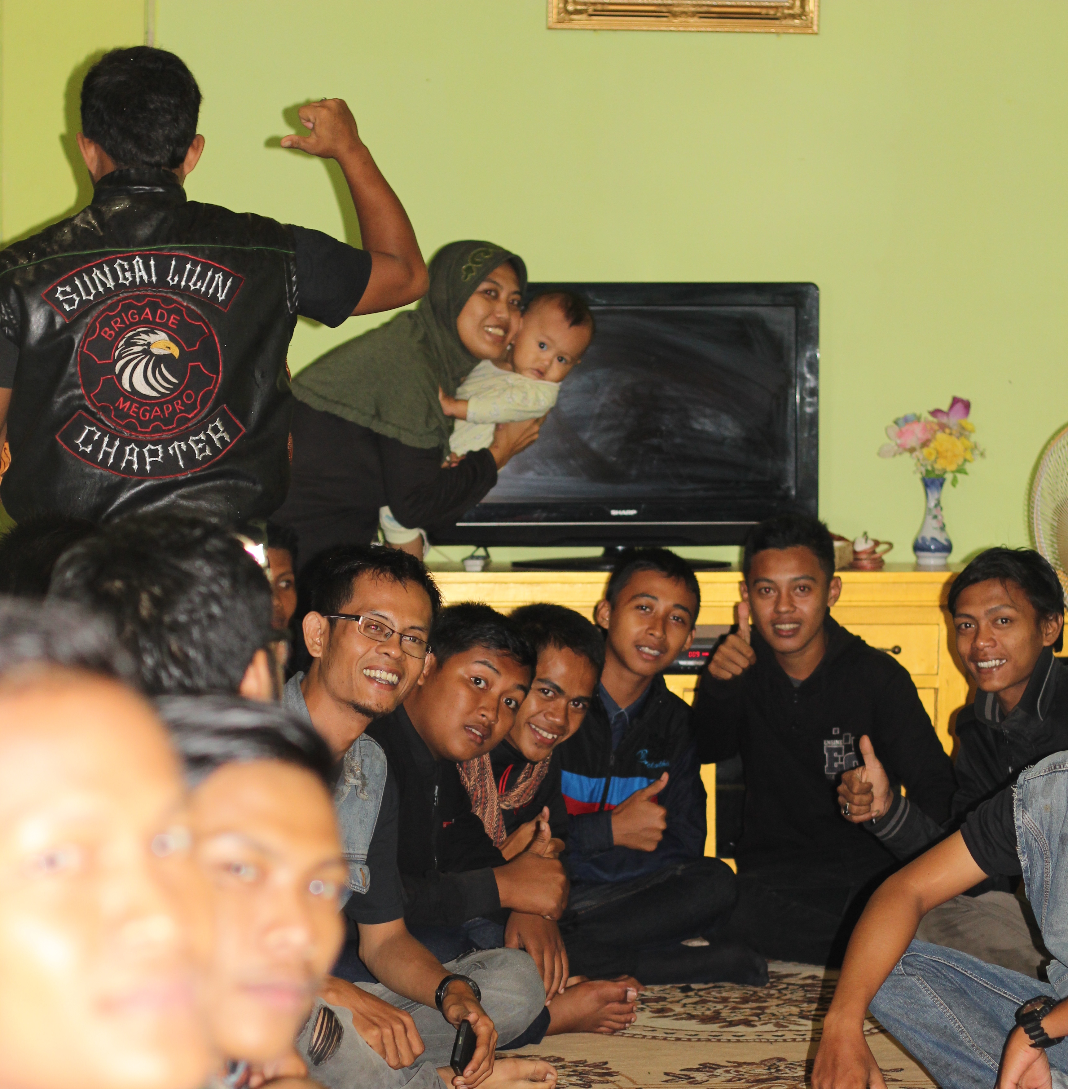 Day two took us further along the Trans Sumatran Highway on slightly better road conditions. It was without incident and finally we could begin to look around. Our guide, Sam led us through South Sumatra to our first stop where somehow Blackberry Messenger was used to let more bikers know we were on our way. After looking at the impressive Ampera Bridge at Palembang we stopped for coffee and to find more “friends” wanting to meet us, give us club stickers and to photograph us! This type of a welcoming party was repeated at our lunch stop with the meeting of members from Banyuasin.