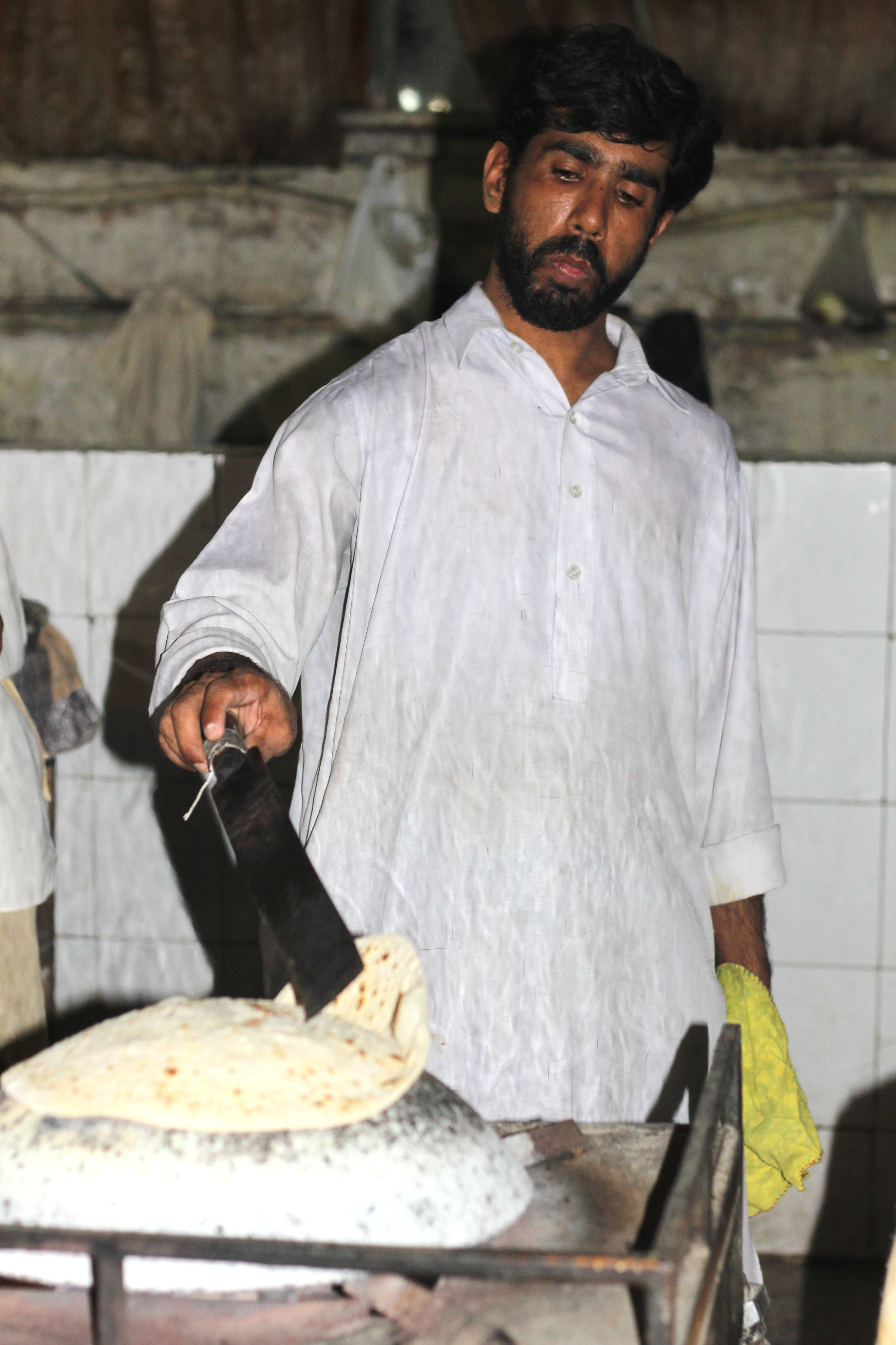 Slowly, the men returned to their jobs; dough making, nan cooking, barbecuing, lassi mixing and other activities.